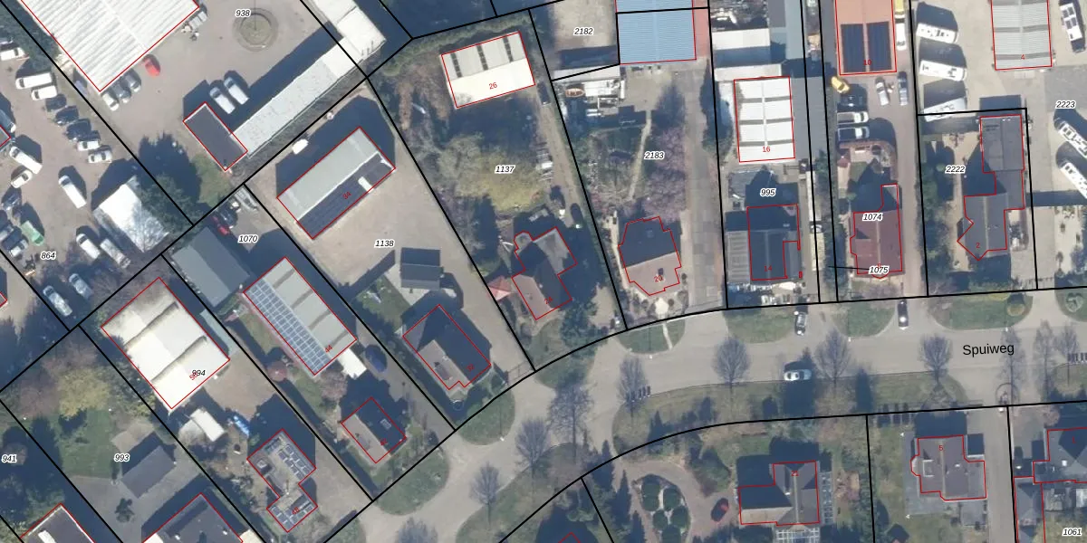 Spuiweg 24 is gelegen op kadastraal perceel LLS00N1137. Deze kadastrale aanduiding is uniek en wordt gebruikt door het Kadaster om eigendomsrechten en andere zakelijke rechten vast te leggen. Het perceel maakt onderdeel uit van de kadastrale gemeente Lelystad.
