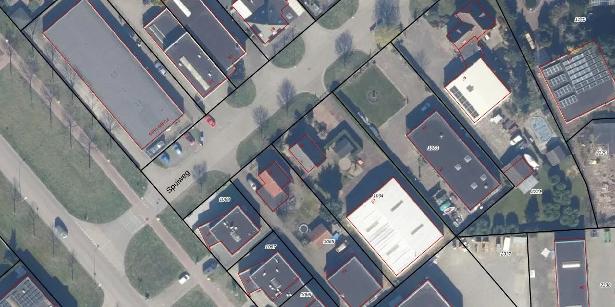 Spuiweg 59 is gelegen op kadastraal perceel LLS00N1064. Deze kadastrale aanduiding is uniek en wordt gebruikt door het Kadaster om eigendomsrechten en andere zakelijke rechten vast te leggen. Het perceel maakt onderdeel uit van de kadastrale gemeente Lelystad.