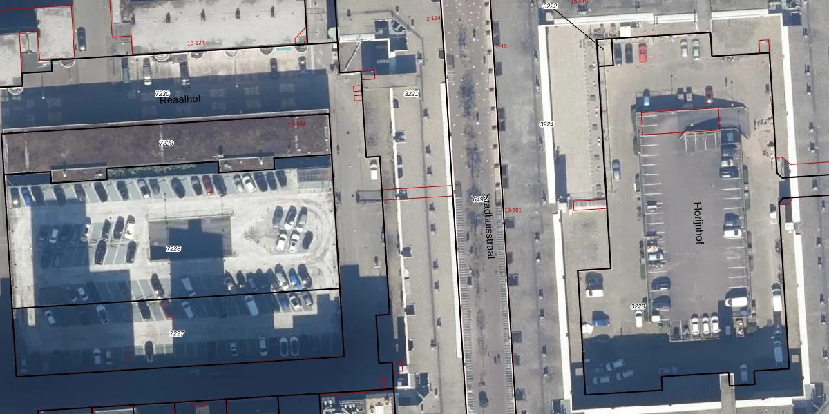 Het perceel waarop Stadhuisstraat 104 staat heeft een oppervlakte van 2176 m². Dit is een zeer groot perceel. De perceeloppervlakte wordt geregistreerd door het Kadaster. Gedetailleerde informatie over de maten van dit perceel kunt u vinden in het rapport Kadastrale kaart met maatvoering van Stadhuisstraat 104.