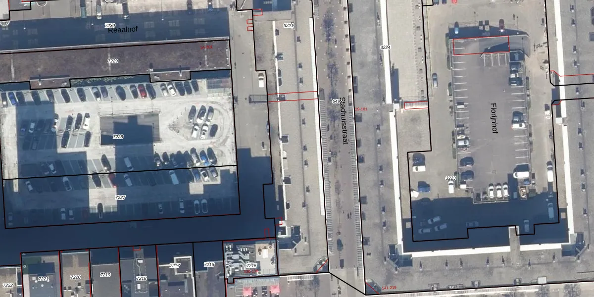 Het perceel waarop Stadhuisstraat 108 staat heeft een oppervlakte van 2176 m². Dit is een zeer groot perceel. De perceeloppervlakte wordt geregistreerd door het Kadaster. Gedetailleerde informatie over de maten van dit perceel kunt u vinden in het rapport Kadastrale kaart met maatvoering van Stadhuisstraat 108.