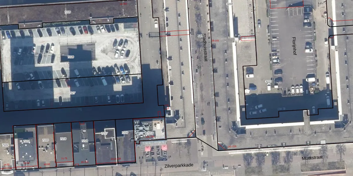 Het perceel waarop Stadhuisstraat 112 staat heeft een oppervlakte van 2176 m². Dit is een zeer groot perceel. De perceeloppervlakte wordt geregistreerd door het Kadaster. Gedetailleerde informatie over de maten van dit perceel kunt u vinden in het rapport Kadastrale kaart met maatvoering van Stadhuisstraat 112.