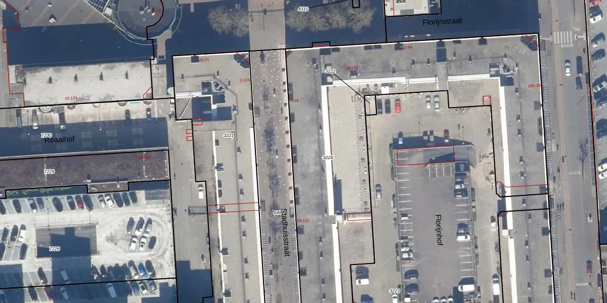 Het perceel waarop Stadhuisstraat 13 staat heeft een oppervlakte van 6277 m². Dit is een zeer groot perceel. De perceeloppervlakte wordt geregistreerd door het Kadaster. Gedetailleerde informatie over de maten van dit perceel kunt u vinden in het rapport Kadastrale kaart met maatvoering van Stadhuisstraat 13.