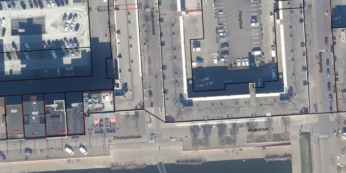 Het perceel waarop Stadhuisstraat 45 staat heeft een oppervlakte van 6277 m². Dit is een zeer groot perceel. De perceeloppervlakte wordt geregistreerd door het Kadaster. Gedetailleerde informatie over de maten van dit perceel kunt u vinden in het rapport Kadastrale kaart met maatvoering van Stadhuisstraat 45.