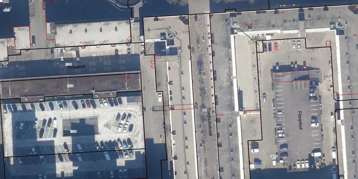 Het perceel waarop Stadhuisstraat 48 staat heeft een oppervlakte van 2176 m². Dit is een zeer groot perceel. De perceeloppervlakte wordt geregistreerd door het Kadaster. Gedetailleerde informatie over de maten van dit perceel kunt u vinden in het rapport Kadastrale kaart met maatvoering van Stadhuisstraat 48.