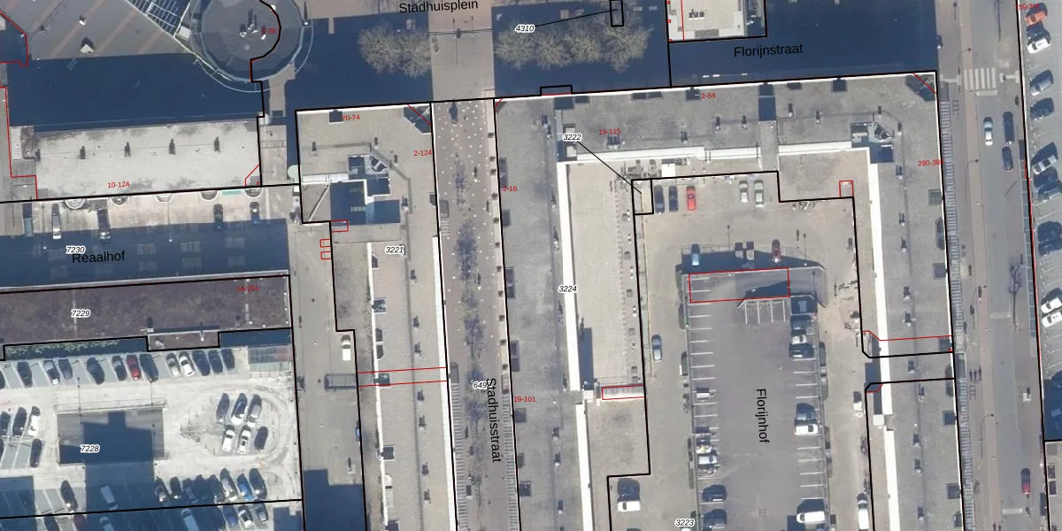 Het perceel waarop Stadhuisstraat 55 staat heeft een oppervlakte van 6277 m². Dit is een zeer groot perceel. De perceeloppervlakte wordt geregistreerd door het Kadaster. Gedetailleerde informatie over de maten van dit perceel kunt u vinden in het rapport Kadastrale kaart met maatvoering van Stadhuisstraat 55.