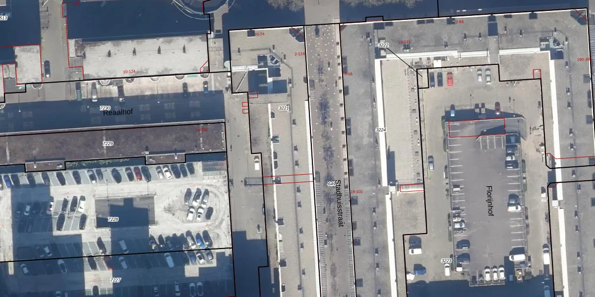 Het perceel waarop Stadhuisstraat 56 staat heeft een oppervlakte van 2176 m². Dit is een zeer groot perceel. De perceeloppervlakte wordt geregistreerd door het Kadaster. Gedetailleerde informatie over de maten van dit perceel kunt u vinden in het rapport Kadastrale kaart met maatvoering van Stadhuisstraat 56.