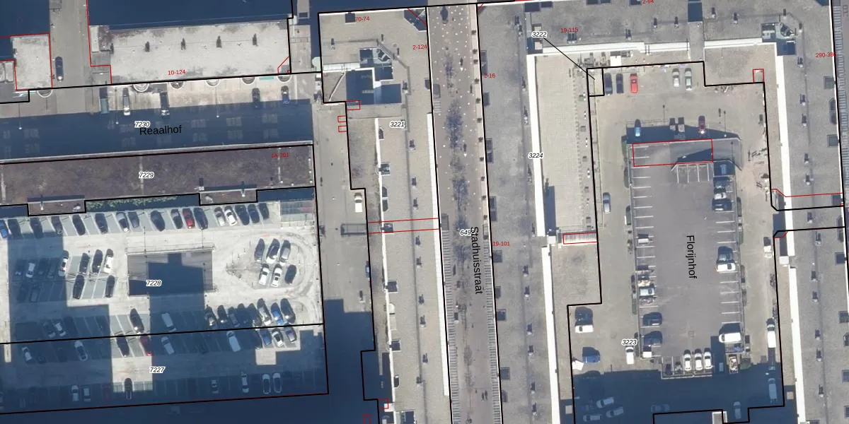Het perceel waarop Stadhuisstraat 58 staat heeft een oppervlakte van 2176 m². Dit is een zeer groot perceel. De perceeloppervlakte wordt geregistreerd door het Kadaster. Gedetailleerde informatie over de maten van dit perceel kunt u vinden in het rapport Kadastrale kaart met maatvoering van Stadhuisstraat 58.