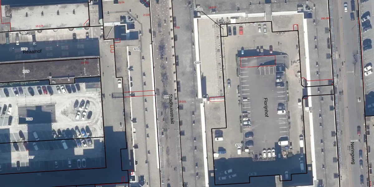 Het perceel waarop Stadhuisstraat 61 staat heeft een oppervlakte van 6277 m². Dit is een zeer groot perceel. De perceeloppervlakte wordt geregistreerd door het Kadaster. Gedetailleerde informatie over de maten van dit perceel kunt u vinden in het rapport Kadastrale kaart met maatvoering van Stadhuisstraat 61.