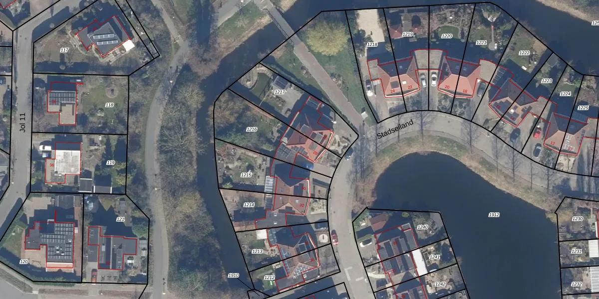 Gebruik de zoekbalk of klik op een perceel voor informatie over de adressen binnen dit perceel.