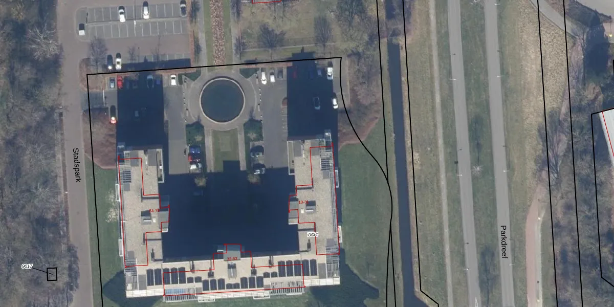 Het perceel waarop Stadspark 26 staat heeft een oppervlakte van 8102 m². Dit is een zeer groot perceel. De perceeloppervlakte wordt geregistreerd door het Kadaster. Gedetailleerde informatie over de maten van dit perceel kunt u vinden in het rapport Kadastrale kaart met maatvoering van Stadspark 26.