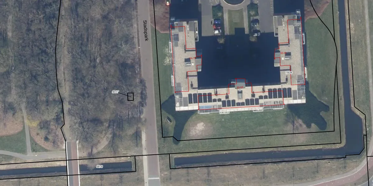 Het perceel waarop Stadspark 54 staat heeft een oppervlakte van 8102 m². Dit is een zeer groot perceel. De perceeloppervlakte wordt geregistreerd door het Kadaster. Gedetailleerde informatie over de maten van dit perceel kunt u vinden in het rapport Kadastrale kaart met maatvoering van Stadspark 54.