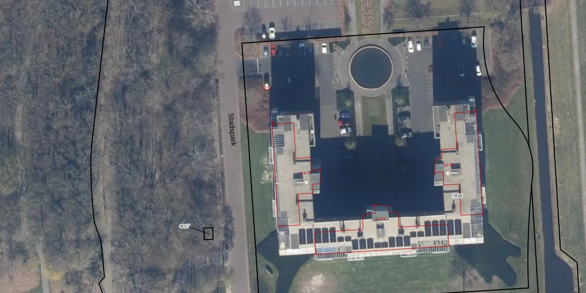 Het perceel waarop Stadspark 75 staat heeft een oppervlakte van 8102 m². Dit is een zeer groot perceel. De perceeloppervlakte wordt geregistreerd door het Kadaster. Gedetailleerde informatie over de maten van dit perceel kunt u vinden in het rapport Kadastrale kaart met maatvoering van Stadspark 75.