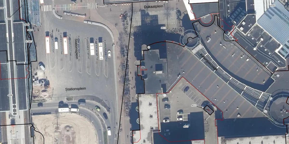 Het perceel waarop Stationsplein 164 staat heeft een oppervlakte van 8234 m². Dit is een zeer groot perceel. De perceeloppervlakte wordt geregistreerd door het Kadaster. Gedetailleerde informatie over de maten van dit perceel kunt u vinden in het rapport Kadastrale kaart met maatvoering van Stationsplein 164.
