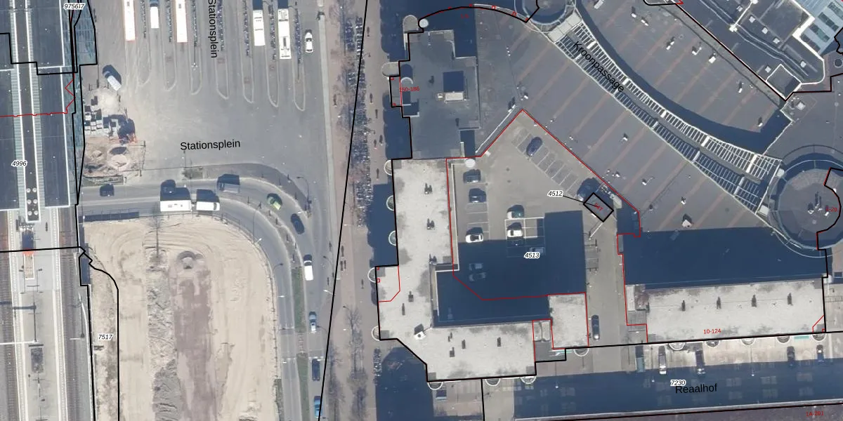 Het perceel waarop Stationsplein 182 staat heeft een oppervlakte van 8234 m². Dit is een zeer groot perceel. De perceeloppervlakte wordt geregistreerd door het Kadaster. Gedetailleerde informatie over de maten van dit perceel kunt u vinden in het rapport Kadastrale kaart met maatvoering van Stationsplein 182.