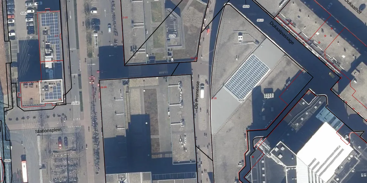Het perceel waarop Stationsplein 58 staat heeft een oppervlakte van 3510 m². Dit is een zeer groot perceel. De perceeloppervlakte wordt geregistreerd door het Kadaster. Gedetailleerde informatie over de maten van dit perceel kunt u vinden in het rapport Kadastrale kaart met maatvoering van Stationsplein 58.