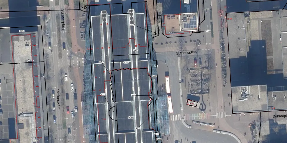 Het perceel waarop Stationsplein 8 staat heeft een oppervlakte van 1695 m². Dit is een zeer groot perceel. De perceeloppervlakte wordt geregistreerd door het Kadaster. Gedetailleerde informatie over de maten van dit perceel kunt u vinden in het rapport Kadastrale kaart met maatvoering van Stationsplein 8.