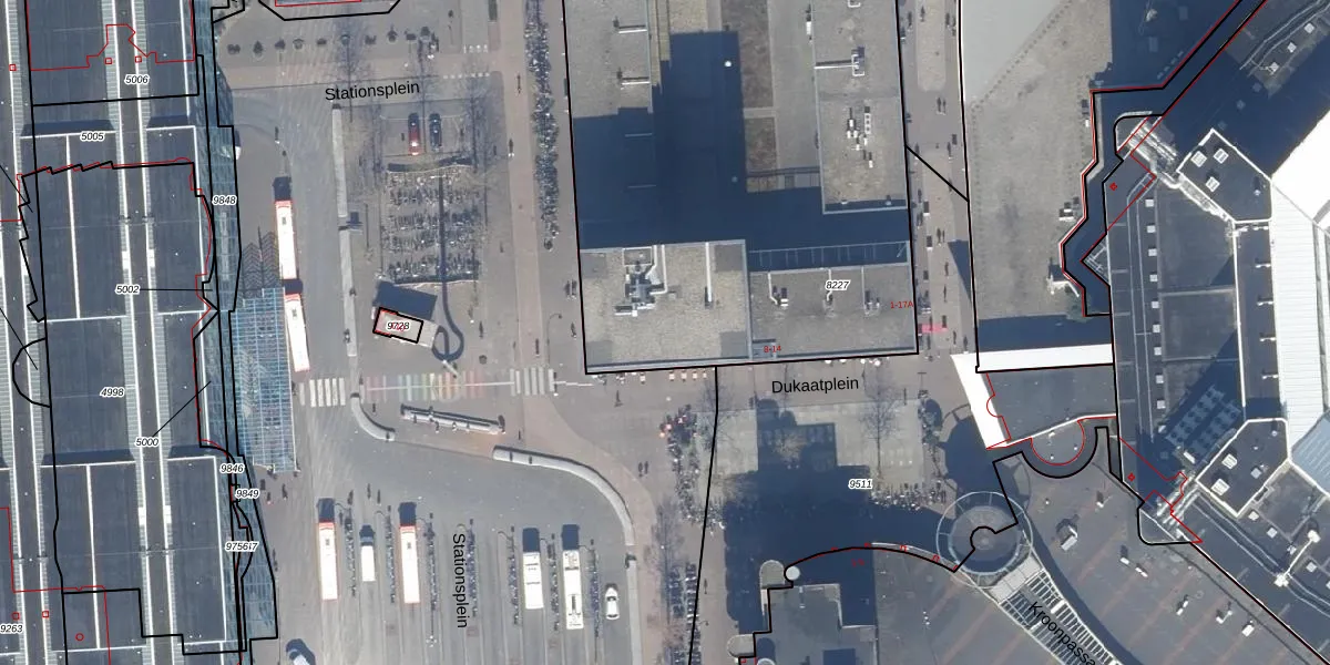 Het perceel waarop Stationsplein 95 staat heeft een oppervlakte van 3510 m². Dit is een zeer groot perceel. De perceeloppervlakte wordt geregistreerd door het Kadaster. Gedetailleerde informatie over de maten van dit perceel kunt u vinden in het rapport Kadastrale kaart met maatvoering van Stationsplein 95.