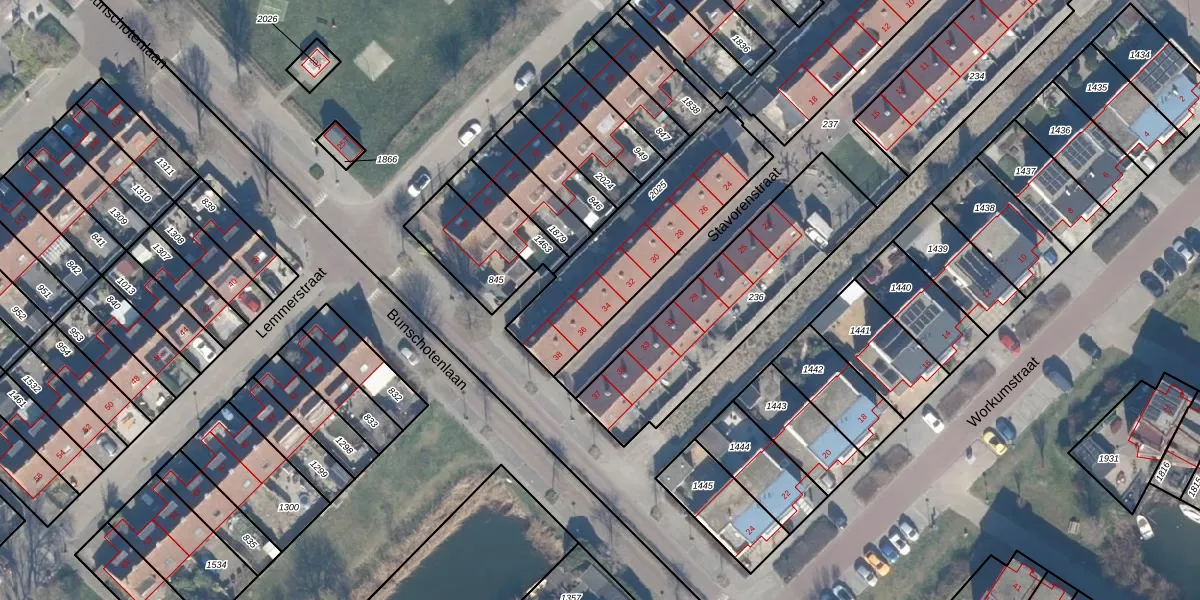 Het perceel waarop Stavorenstraat 34 staat heeft een oppervlakte van 622 m². Dit is een groot perceel. De perceeloppervlakte wordt geregistreerd door het Kadaster. Gedetailleerde informatie over de maten van dit perceel kunt u vinden in het rapport Kadastrale kaart met maatvoering van Stavorenstraat 34.