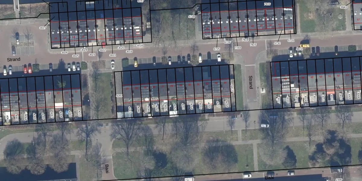 Gebruik de zoekbalk of klik op een perceel voor informatie over de adressen binnen dit perceel.