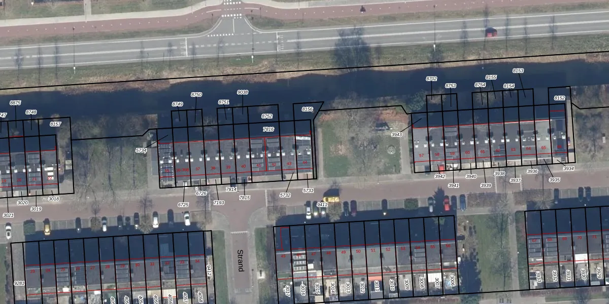Het perceel waarop Strand 44 staat heeft een oppervlakte van 102 m². Dit is een middelgroot perceel. De perceeloppervlakte wordt geregistreerd door het Kadaster. Gedetailleerde informatie over de maten van dit perceel kunt u vinden in het rapport Kadastrale kaart met maatvoering van Strand 44.