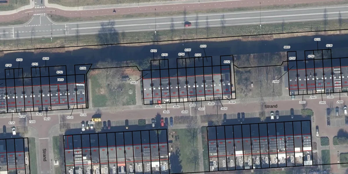 Gebruik de zoekbalk of klik op een perceel voor informatie over de adressen binnen dit perceel.