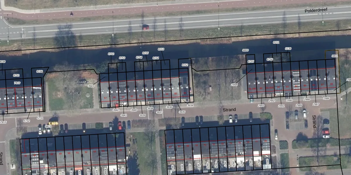 Gebruik de zoekbalk of klik op een perceel voor informatie over de adressen binnen dit perceel.