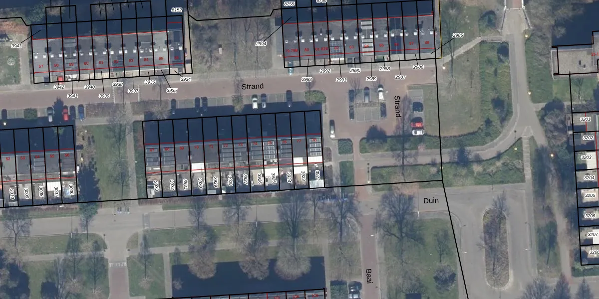 Gebruik de zoekbalk of klik op een perceel voor informatie over de adressen binnen dit perceel.