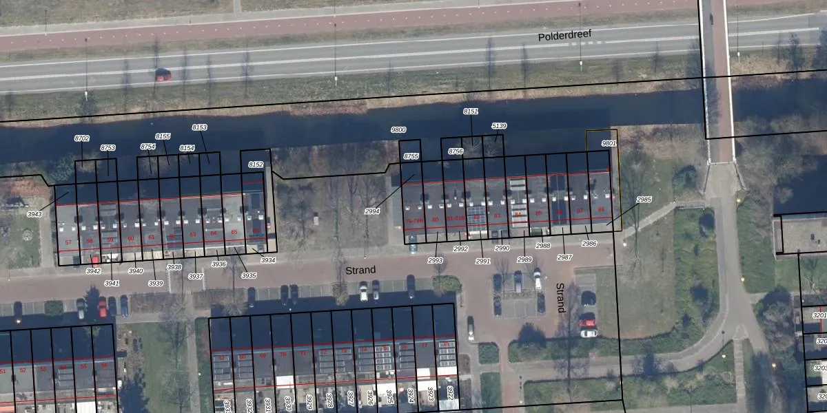 Het perceel waarop Strand 79 staat heeft een oppervlakte van 102 m². Dit is een middelgroot perceel. De perceeloppervlakte wordt geregistreerd door het Kadaster. Gedetailleerde informatie over de maten van dit perceel kunt u vinden in het rapport Kadastrale kaart met maatvoering van Strand 79.