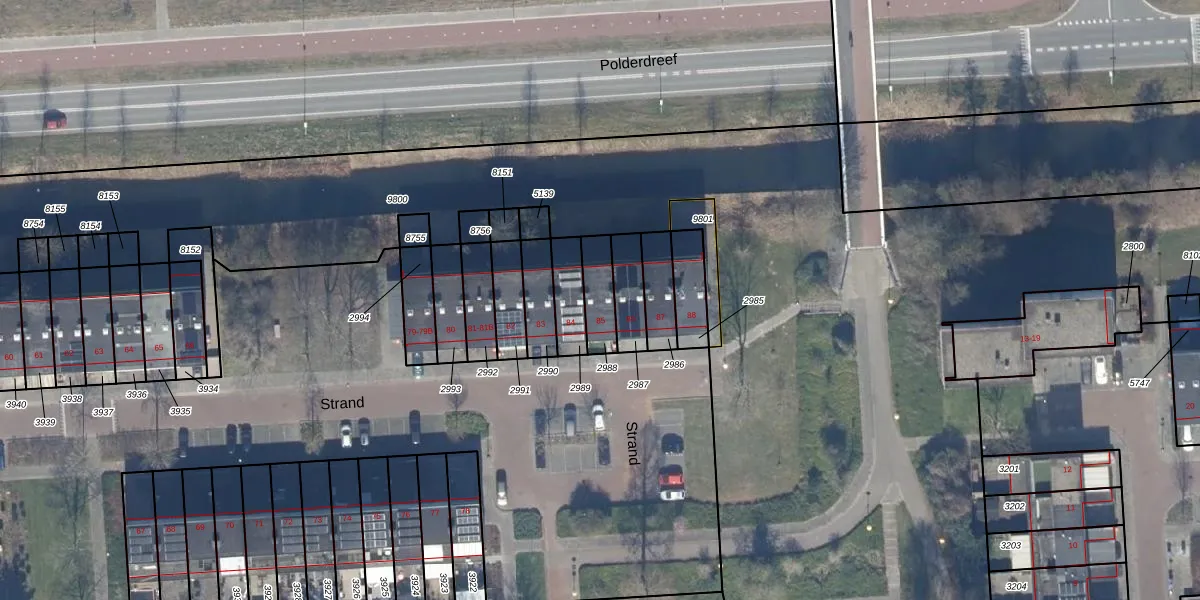 Het perceel waarop Strand 85 staat heeft een oppervlakte van 99 m². Dit is een klein perceel. De perceeloppervlakte wordt geregistreerd door het Kadaster. Gedetailleerde informatie over de maten van dit perceel kunt u vinden in het rapport Kadastrale kaart met maatvoering van Strand 85.