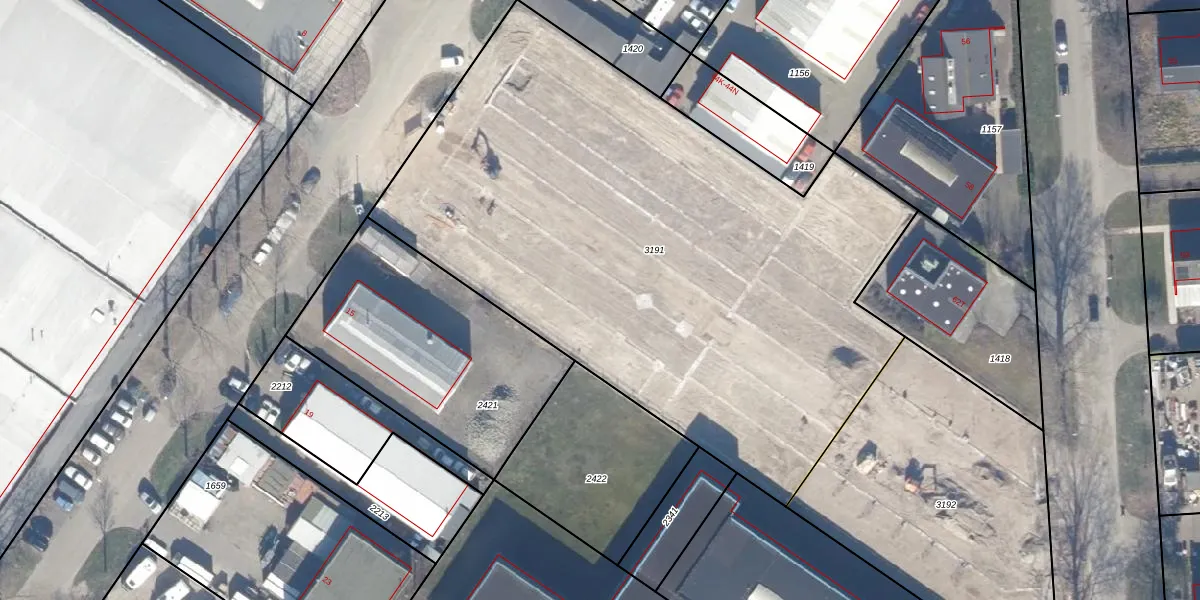 Het adres ligt op het perceel LLS00-N-3191, dat zich in de kadastrale gemeente Lelystad bevindt. Het perceel is 3807 m² groot. Dat is kleiner dan de gemiddelde perceeloppervlakte in Lelystad, dat op 2,1 ha ligt. Het kleinste perceel in de kadastrale gemeente is 0 m² groot. De grootste perceeloppervlakte is 78,50 km². Op het perceel liggen in totaal 198 adressen. De huidige grenzen van het perceel zijn digitaal in de Basisregistratie Kadaster (BRK) geregistreerd op 22-06-2023.