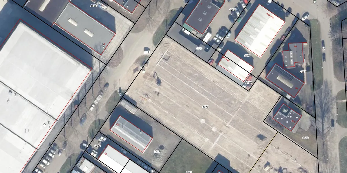 Het adres ligt op het perceel LLS00-N-3191, dat zich in de kadastrale gemeente Lelystad bevindt. Het perceel is 3807 m² groot. Dat is kleiner dan de gemiddelde perceeloppervlakte in Lelystad, dat op 2,1 ha ligt. Het kleinste perceel in de kadastrale gemeente is 0 m² groot. De grootste perceeloppervlakte is 78,50 km². Op het perceel liggen in totaal 198 adressen. De huidige grenzen van het perceel zijn digitaal in de Basisregistratie Kadaster (BRK) geregistreerd op 22-06-2023.