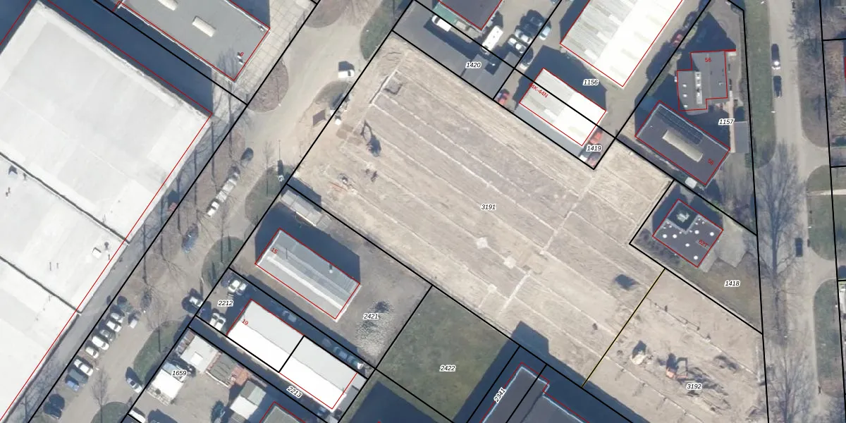 Het adres ligt op het perceel LLS00-N-3191, dat zich in de kadastrale gemeente Lelystad bevindt. Het perceel is 3807 m² groot. Dat is kleiner dan de gemiddelde perceeloppervlakte in Lelystad, dat op 2,1 ha ligt. De grootste perceeloppervlakte in de kadastrale gemeente is 78,50 km². De kleinste oppervlakte bedraagt 0 m². Op het perceel liggen in totaal 198 adressen. De huidige grenzen van het perceel zijn digitaal in de Basisregistratie Kadaster (BRK) geregistreerd op 22-06-2023.