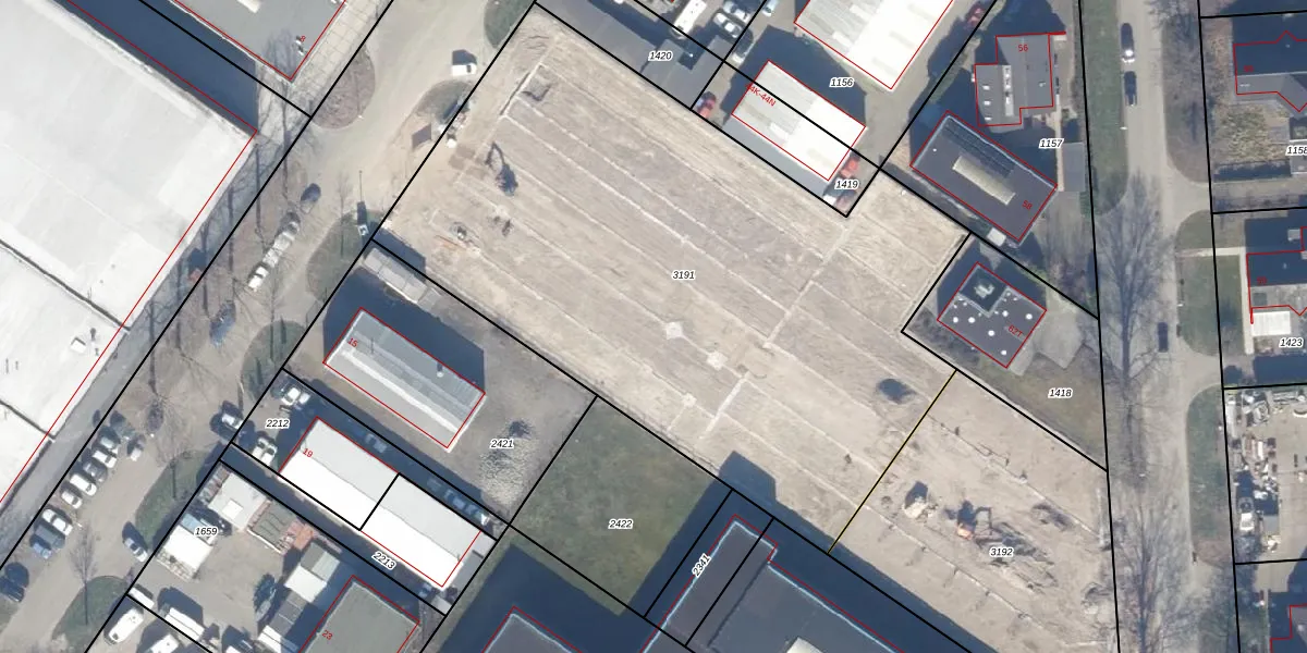 Het adres ligt op het perceel LLS00-N-3191, dat zich in de kadastrale gemeente Lelystad bevindt. Het perceel is 3807 m² groot. Dat is kleiner dan de gemiddelde perceeloppervlakte in Lelystad, dat op 2,1 ha ligt. De grootste perceeloppervlakte in de kadastrale gemeente is 78,50 km². De kleinste oppervlakte bedraagt 0 m². Er zijn 198 adressen aanwezig op het perceel. De huidige grenzen van het perceel zijn digitaal in de Basisregistratie Kadaster (BRK) geregistreerd op 22-06-2023.