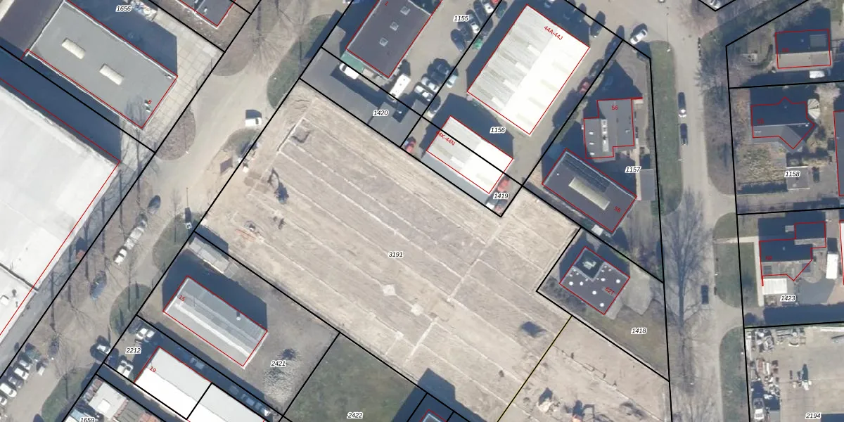 Het adres ligt op het perceel LLS00-N-3191, dat zich in de kadastrale gemeente Lelystad bevindt. Het perceel is 3807 m² groot. Dat is kleiner dan de gemiddelde perceeloppervlakte in Lelystad, dat op 2,1 ha ligt. De grootste perceeloppervlakte in de kadastrale gemeente is 78,50 km². De kleinste oppervlakte bedraagt 0 m². Er zijn 198 adressen aanwezig op het perceel. De huidige grenzen van het perceel zijn digitaal in de Basisregistratie Kadaster (BRK) geregistreerd op 22-06-2023.