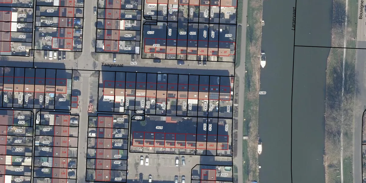 Het perceel waarop Taagstraat 30 staat heeft een oppervlakte van 130 m². Dit is een middelgroot perceel. De perceeloppervlakte wordt geregistreerd door het Kadaster. Gedetailleerde informatie over de maten van dit perceel kunt u vinden in het rapport Kadastrale kaart met maatvoering van Taagstraat 30.