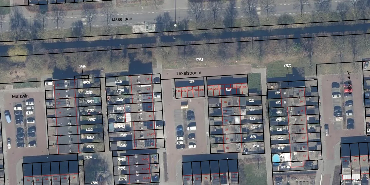 Texelstroom 24-B is gelegen op kadastraal perceel LLS00K976. Deze kadastrale aanduiding is uniek en wordt gebruikt door het Kadaster om eigendomsrechten en andere zakelijke rechten vast te leggen. Het perceel maakt onderdeel uit van de kadastrale gemeente Lelystad.