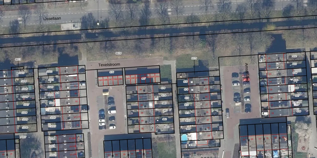 Texelstroom 25-G is gelegen op kadastraal perceel LLS00K977. Deze kadastrale aanduiding is uniek en wordt gebruikt door het Kadaster om eigendomsrechten en andere zakelijke rechten vast te leggen. Het perceel maakt onderdeel uit van de kadastrale gemeente Lelystad.
