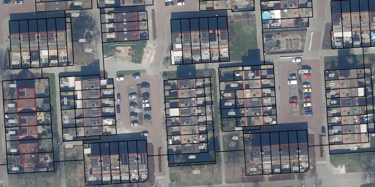 Gebruik de zoekbalk of klik op een perceel voor informatie over de adressen binnen dit perceel.
