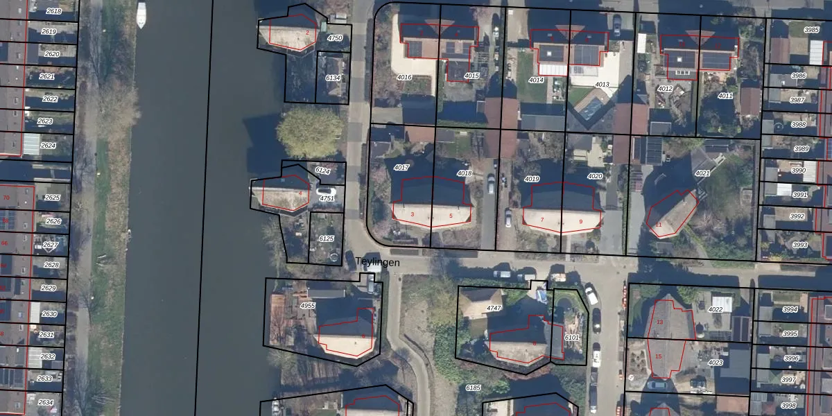Gebruik de zoekbalk of klik op een perceel voor informatie over de adressen binnen dit perceel.