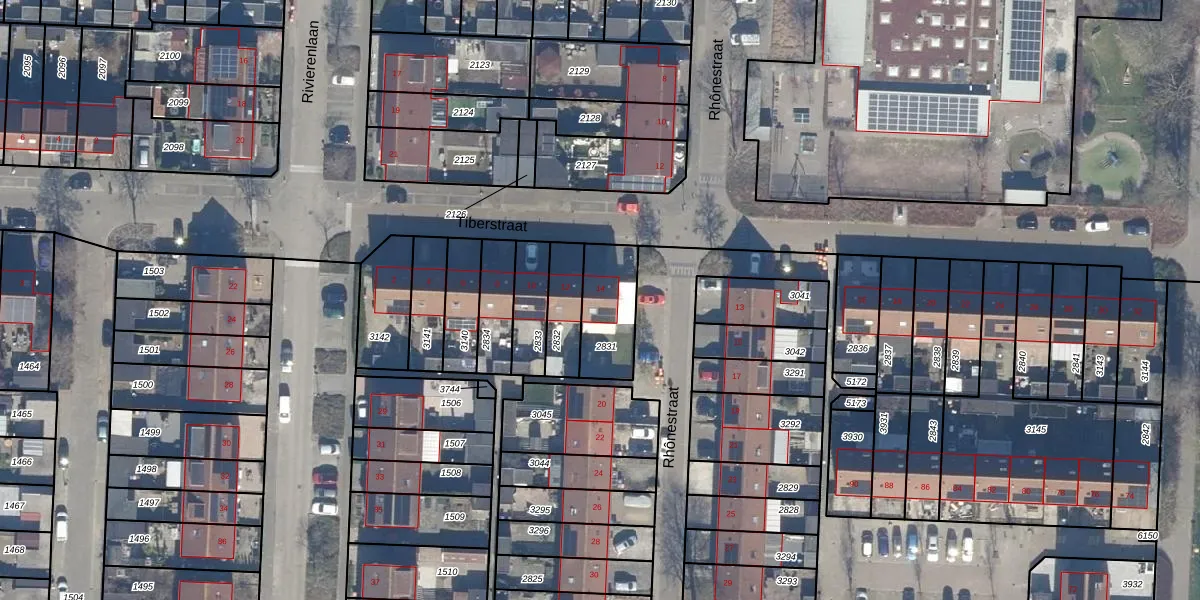 Gebruik de zoekbalk of klik op een perceel voor informatie over de adressen binnen dit perceel.