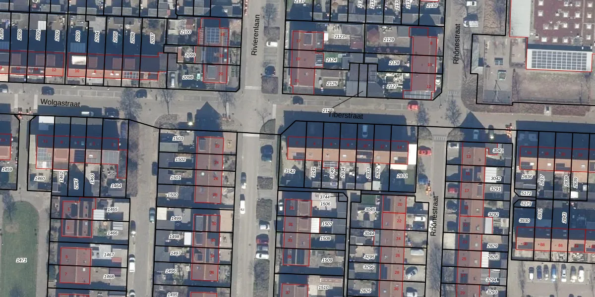 Gebruik de zoekbalk of klik op een perceel voor informatie over de adressen binnen dit perceel.