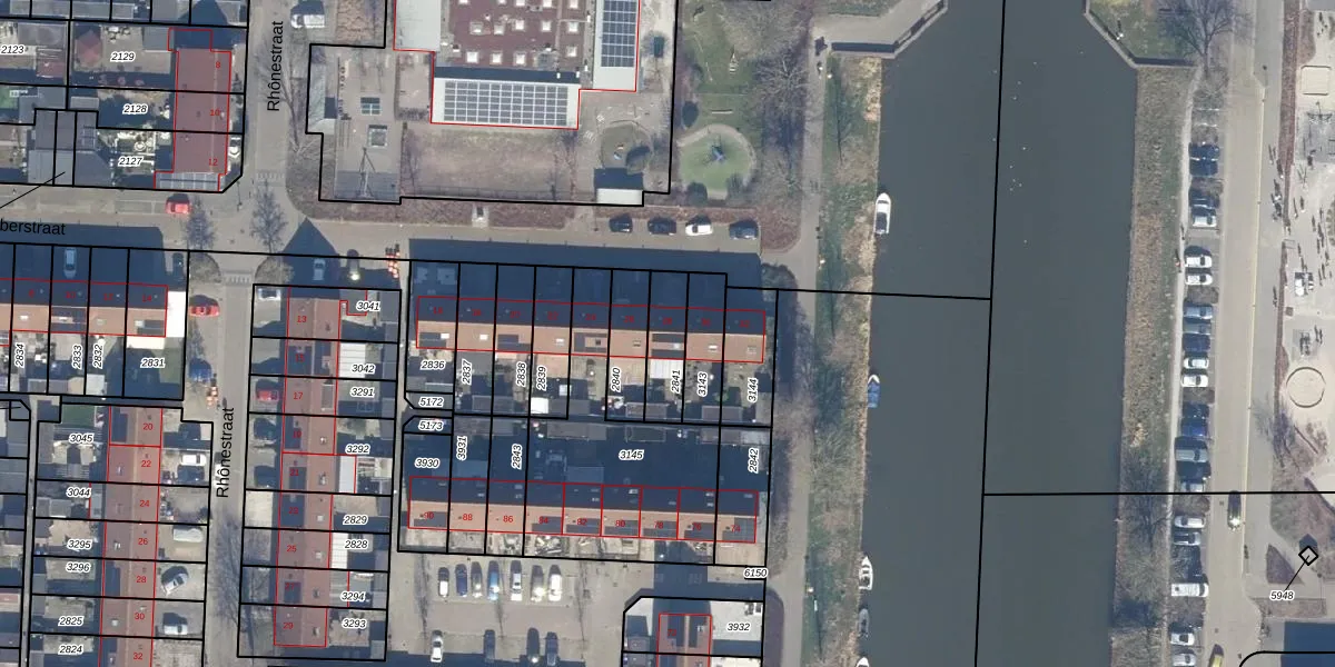 Gebruik de zoekbalk of klik op een perceel voor informatie over de adressen binnen dit perceel.