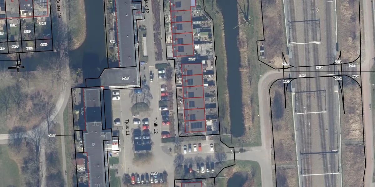 Het perceel waarop Tjalk 12 8 staat heeft een oppervlakte van 1880 m². Dit is een zeer groot perceel. De perceeloppervlakte wordt geregistreerd door het Kadaster. Gedetailleerde informatie over de maten van dit perceel kunt u vinden in het rapport Kadastrale kaart met maatvoering van Tjalk 12 8.