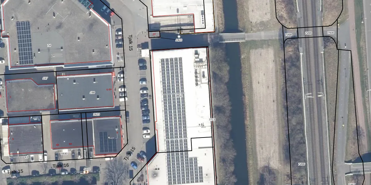 Gebruik de zoekbalk of klik op een perceel voor informatie over de adressen binnen dit perceel.