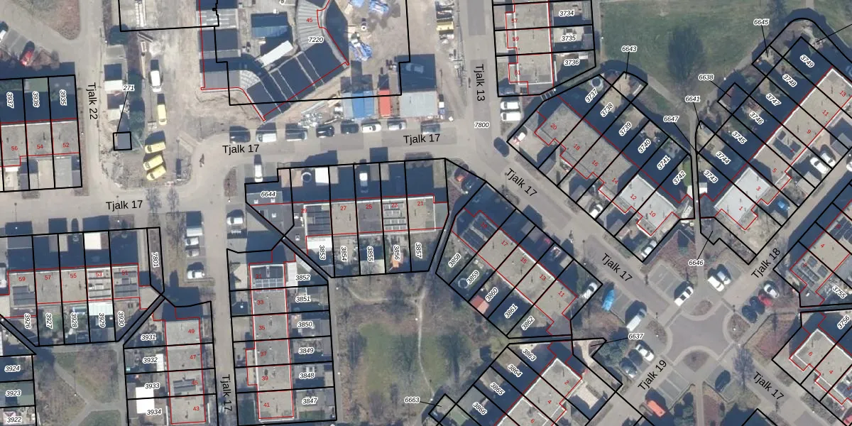 Tjalk 17 21 is gelegen op kadastraal perceel LLS00O3857. Deze kadastrale aanduiding is uniek en wordt gebruikt door het Kadaster om eigendomsrechten en andere zakelijke rechten vast te leggen. Het perceel maakt onderdeel uit van de kadastrale gemeente Lelystad.