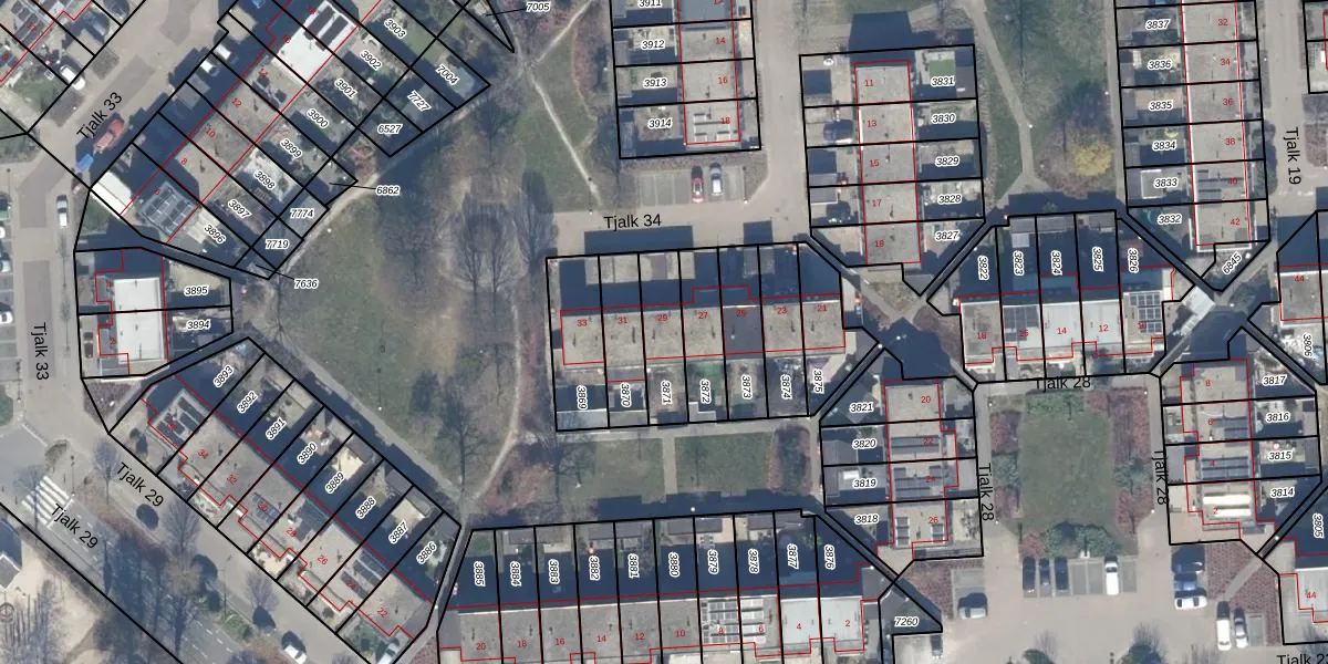 Gebruik de zoekbalk of klik op een perceel voor informatie over de adressen binnen dit perceel.