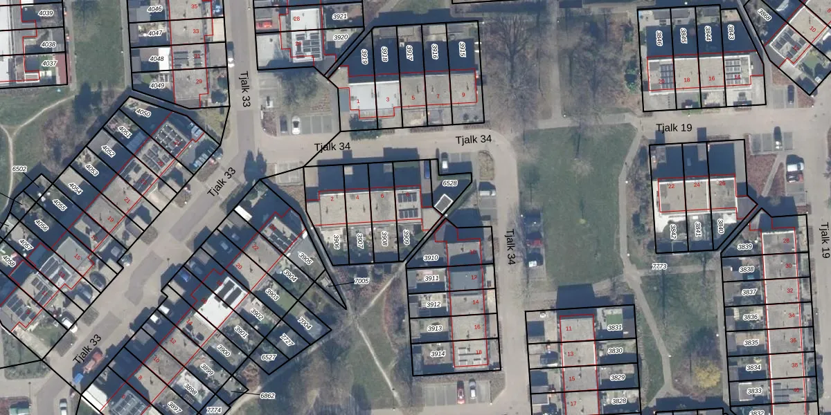 Gebruik de zoekbalk of klik op een perceel voor informatie over de adressen binnen dit perceel.