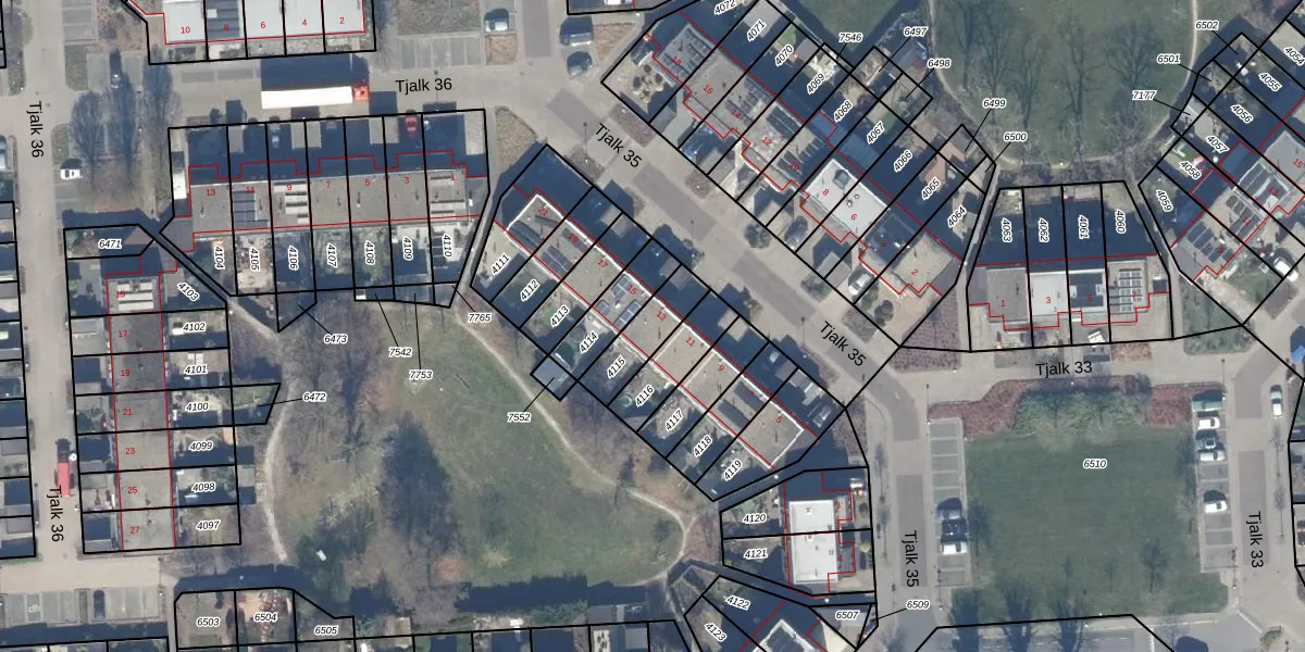Gebruik de zoekbalk of klik op een perceel voor informatie over de adressen binnen dit perceel.