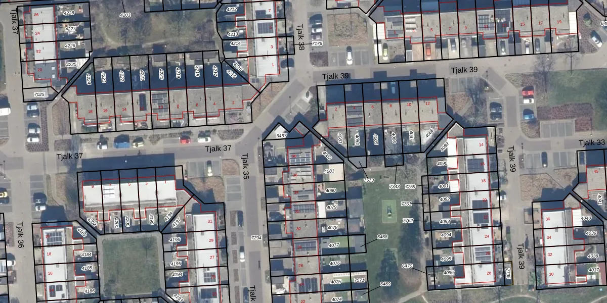 Het perceel waarop Tjalk 35 38 staat heeft een oppervlakte van 207 m². Dit is een middelgroot perceel. De perceeloppervlakte wordt geregistreerd door het Kadaster. Gedetailleerde informatie over de maten van dit perceel kunt u vinden in het rapport Kadastrale kaart met maatvoering van Tjalk 35 38.