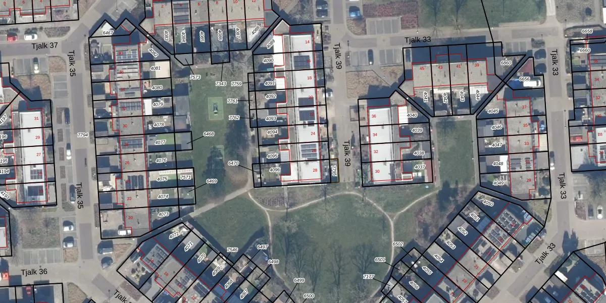 Gebruik de zoekbalk of klik op een perceel voor informatie over de adressen binnen dit perceel.